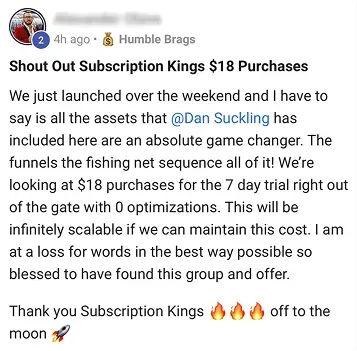 Subscription Kings is for operators - people ready to build a weekly recurring revenue machine, not people “trying things out.”